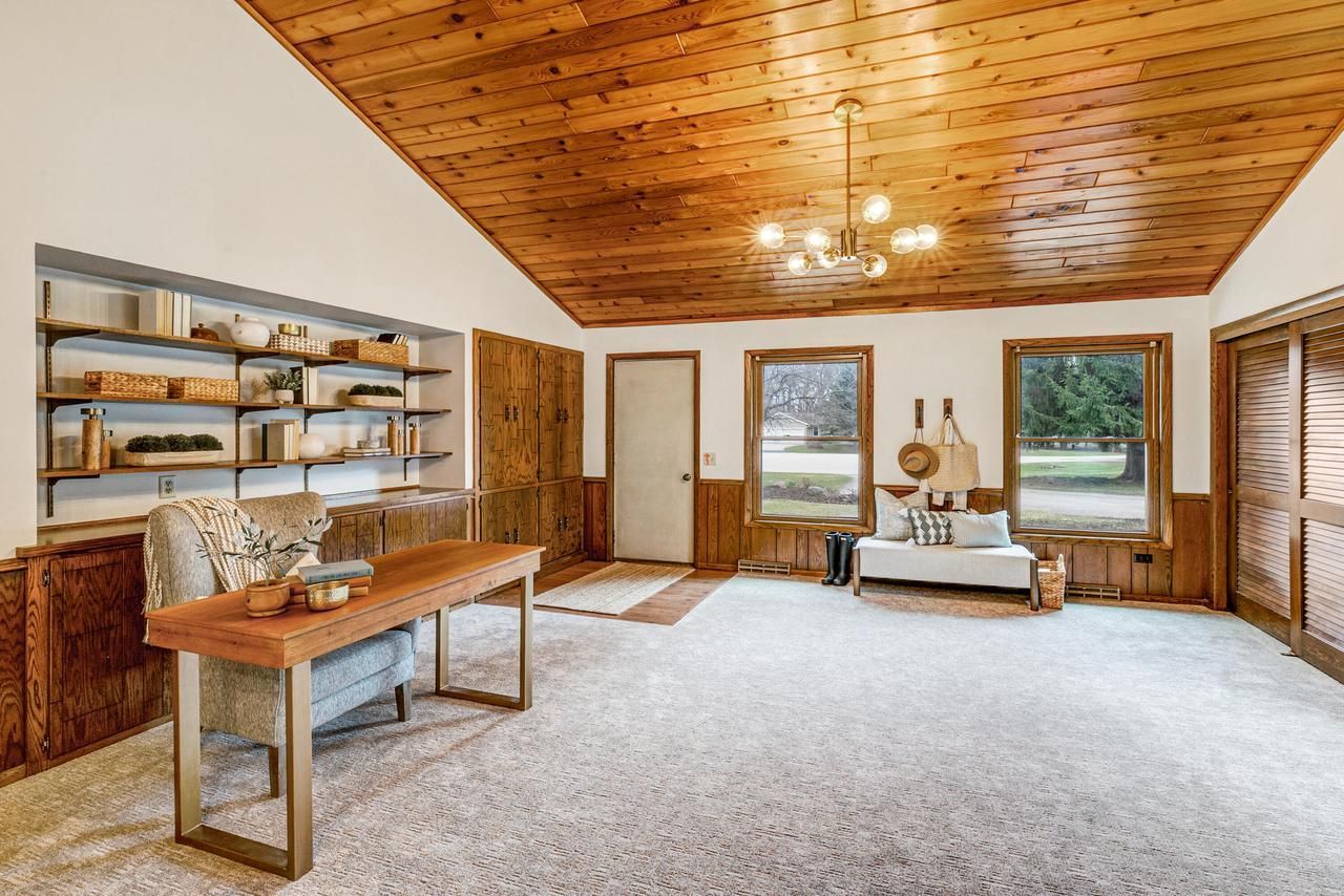 This cherished ranch style home is set on a 1.2 acre lot lined with mature trees for privacy. A vaulted ceiling, built in bar and natural fireplace make the spacious living room ideal for entertaining. The kitchen with adjacent dinette affords views of the backyard and wildlife. The dining room with a built in china cabinet provides a perfect setting for mealtime conversation and the family room offers additional space to relax and unwind. Recent updates include new flooring and fresh paint throughout the home and new light fixtures. Great location near Pike Lake, Holy Hill and Kettle Moraine State Forest. Idyllic scenery, desirable schools and a quaint downtown contribute to the charm of this home. Some photos have been virtually staged or AI-enhanced to show potential use of space