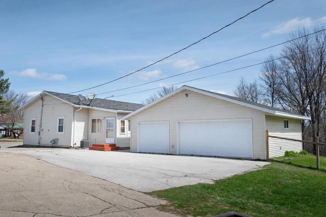 One house, two garages, half an acre. With six total garage stalls, this property offers a setup you rarely see. Three stalls feature over ten foot walls, and one is heated with LP gas, includes water access, and a built in workbench, store your recreational equipment, or have organized storage. Inside, three bedrooms and two bathrooms create ample space. The lower level bathroom features a relaxing jetted tub setting, creating a true place to unwind. One bedroom is currently used as a hobby space and offers a bright, sun filled room that easily adapts to a variety of uses. Main floor laundry adds convenience, while the AC and furnace are approximately ten years old. A brand new porch and patio extend the living space outdoors overlooking the fenced in yard. A rare, move-in ready home.