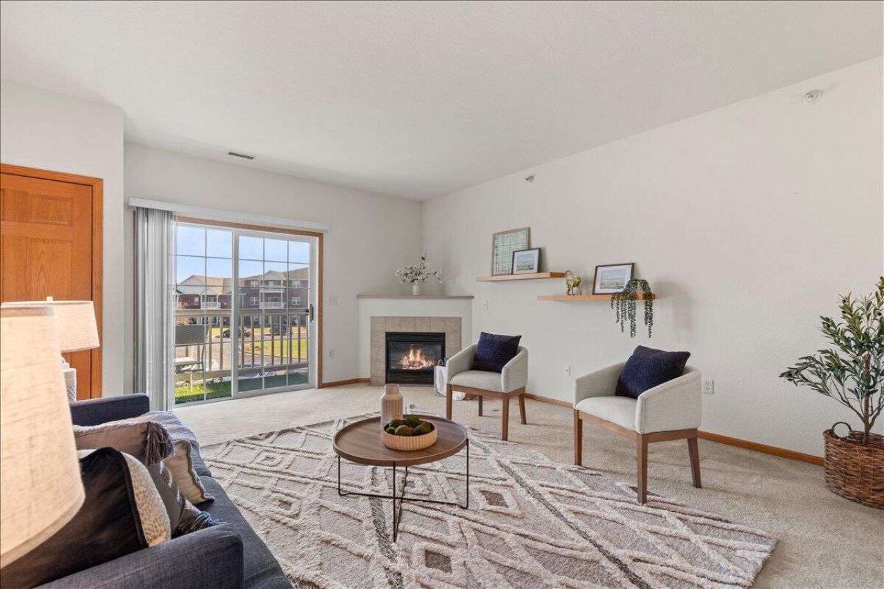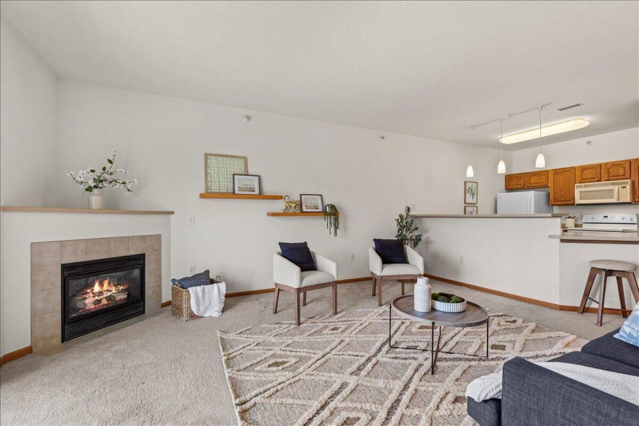 Tucked away on a quiet, tree-lined street, this charming one-bedroom condo offers comfort, convenience, and peaceful living. The inviting living room features a cozy gas fireplace and opens to a private balcony, perfect for relaxing or enjoying your morning coffee. The kitchen offers ample counter space with room for casual seating, plus a separate dining nook for more formal meals. Enjoy the ease of an in-unit laundry room and the flexibility of one full bath, plus a half bath for guests. Residents can gather in the community room, adding a welcoming social touch. Surrounded by lush green space with heated parking, this secluded setting offers a perfect blend of privacy and accessibility.